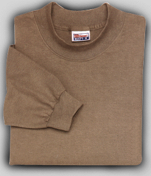 Style # 5886 100% ring-spun cotton, 6.1 oz. heavyweight jersey fabric, 17 singles, quarter turned, preshrunk, cotton/lycra rib knit mock turtleneck and cuffs, double needle coverseamed neck, shoulder-to-shoulder taping, double needle hem. Available